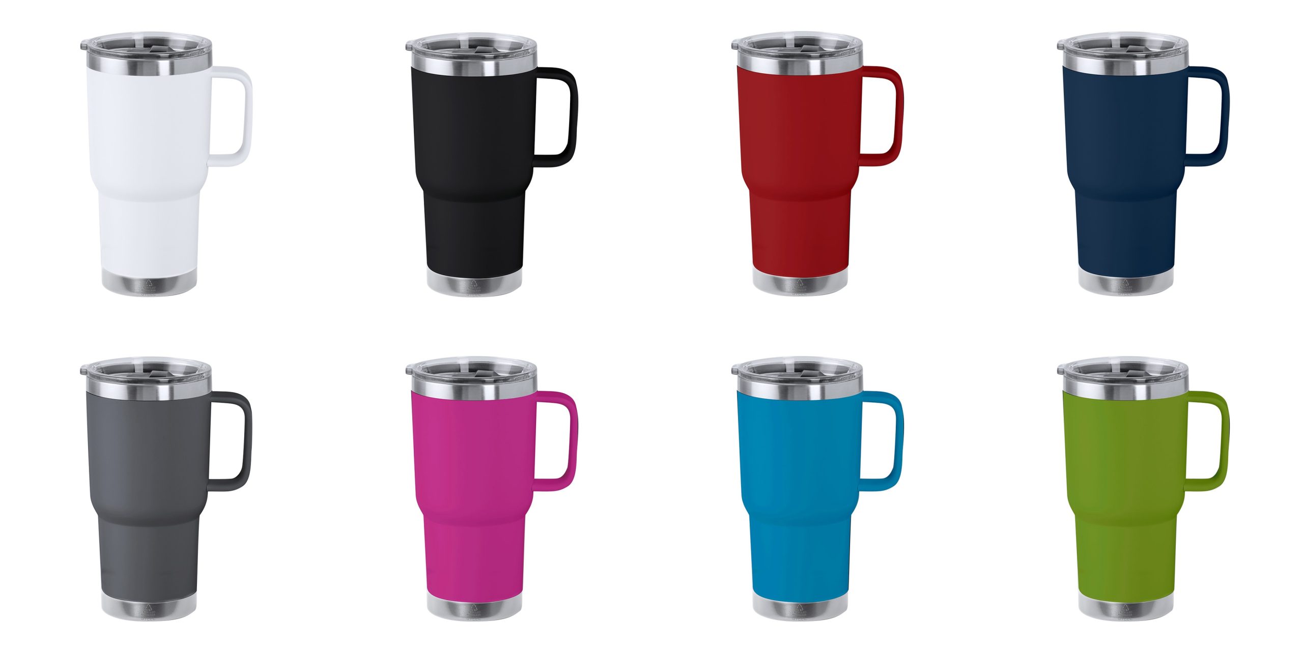 κούπα από ανακυκλωμένο ανοξείδωτο ατσάλι, με διπλό τοίχωμα και ματ χρώμα χωρητικότητας 600 ml. Περιλαμβάνει καπάκι κουμπώματος, διανομέα που ανοίγει εύκολα και άκαμπτη λαβή για ευκολία. Είναι ιδανικό για το γραφείο, το τραπέζι ή οποιαδήποτε επιφάνεια όπου μπορείτε να απολαύσετε το αγαπημένο σας ποτό. Με λογότυπο Recycled Stainless Steel.