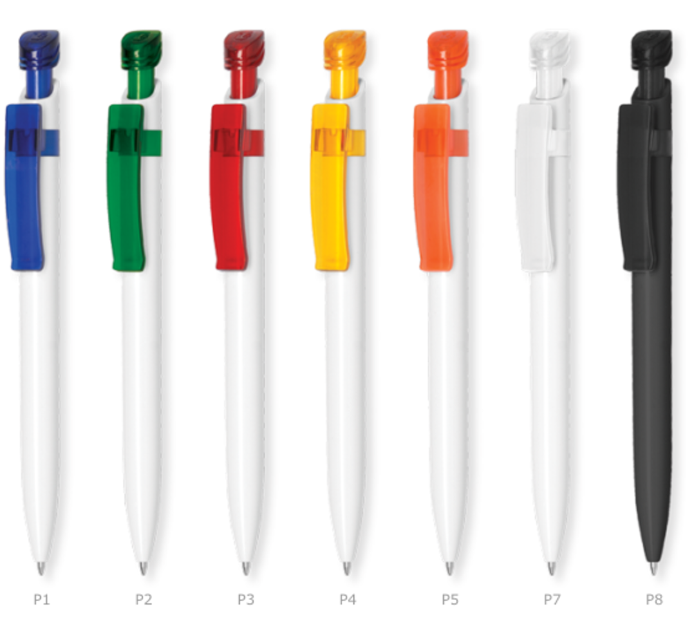 Πλαστικό στυλό με άσπρο σώμα , χρωματιστά clip.