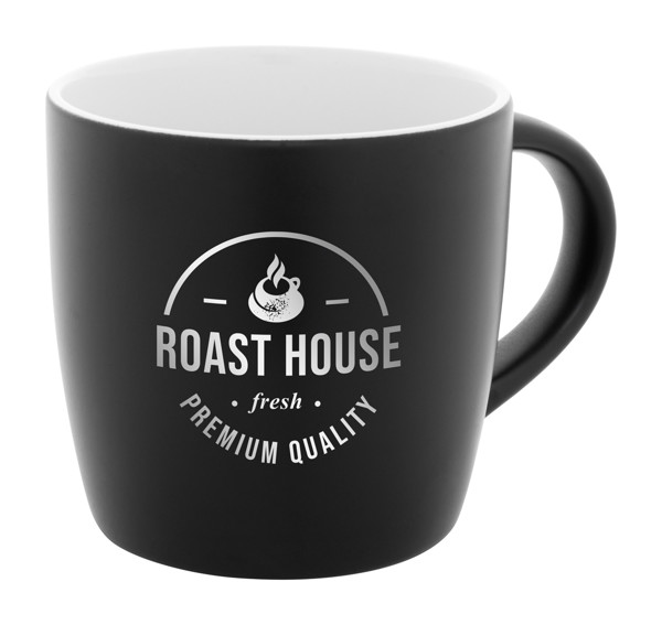 Μαύρη κεραμική κούπα διπλού χρώματος όταν χαράζεται . Χωρητικότητα: 300 ml.