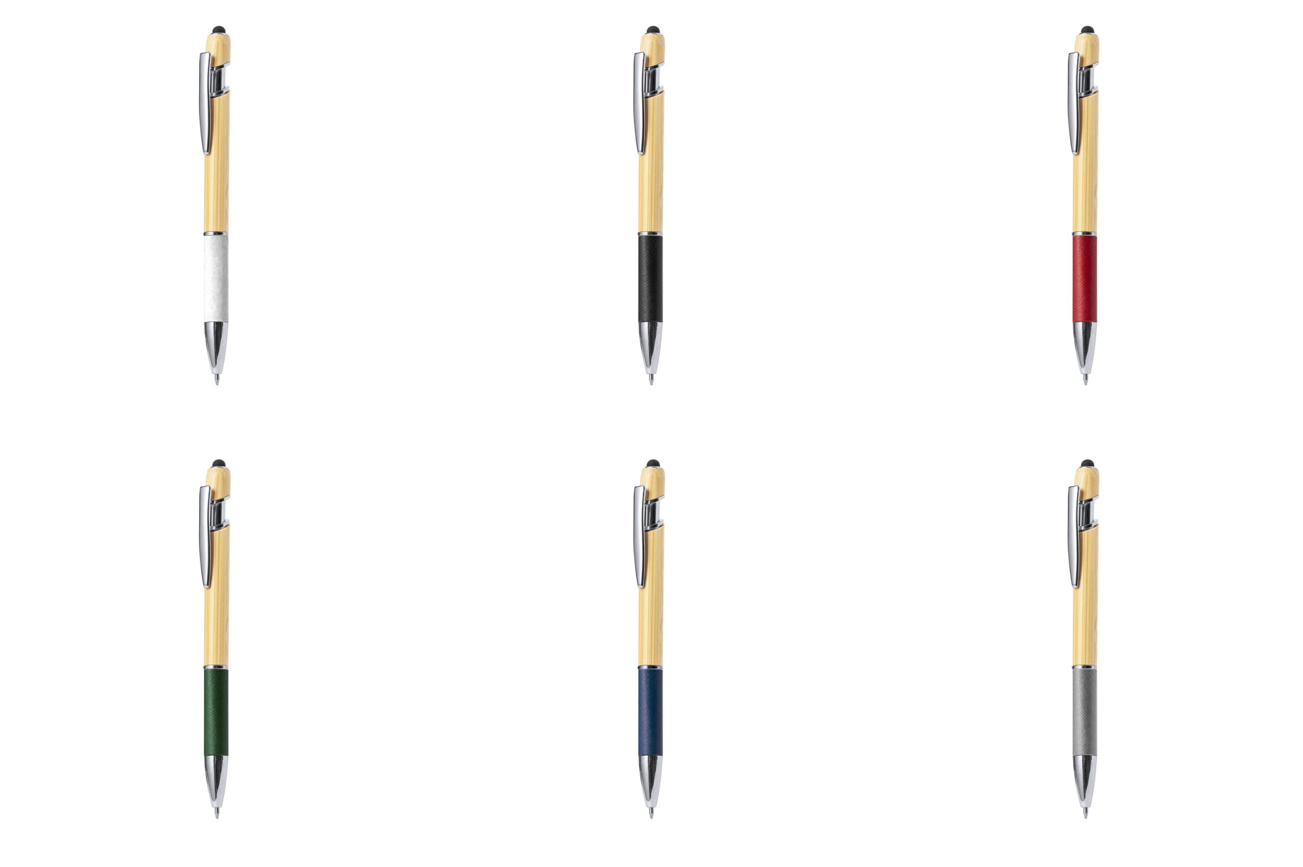 Στυλό με μπαμπού και λαβή από χαρτόνι ανακυκλωμένης υφής, σε ποικιλία χρωμάτων.