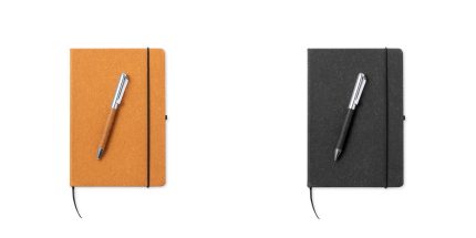 Α5 με σκληρό ανακυκλωμένο κάλυμμα χαρτοκιβωτίου. Μπεζ κάλυμμα. Δεσμευμένη υπόθεση. 160 σελίδες ανακυκλωμένου χαρτιού με γραμμές (80 φύλλα). Ελαστικός ιμάντας κλεισίματος, αντιστοίχιση σελιδοδείκτη κορδέλας με αποκαλυφθέν χρώμα. Μετά τη χάραξη με λέιζερ αποκαλύπτεται το χρώμα.