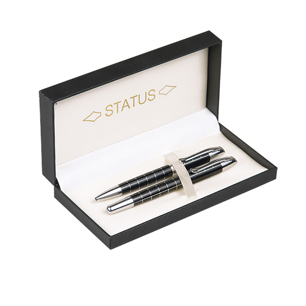 ΣΕΤ ΣΤΥΛΟ-ΡΟΛΕΡ ZEUS Σετ στυλό-ρόλερ πολυτελείας μάρκας STATUS μαύρο με ασημί λεπτομέρειες σε μαύρο κουτί με σατέν εσωτερικά.