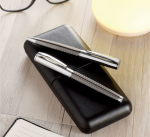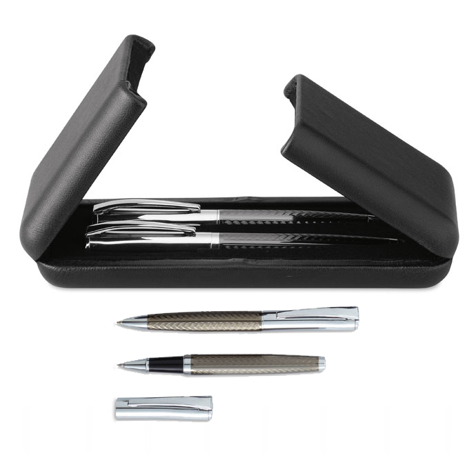 Μεταλλικά στυλό roller και ball pen σε θήκη.