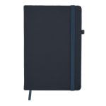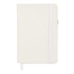 Σημειωματάριο A5 με 70% ανακυκλωμένο δέρμα πριν από την κατανάλωση και κάλυμμα πολυουρεθάνης από λάτεξ 30%. Κάσα. 192 σελίδες με γραμμές ανακυκλωμένο χαρτί (96 φύλλα). Ασορτί βαμβακερός ελαστικός ιμάντας κλεισίματος και θήκη στυλό.