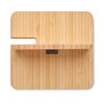 Πτυσσόμενος σταθμός φόρτισης 3 σε 1 σε θήκη μπαμπού και βάση τηλεφώνου. Περιλαμβάνει ασύρματο φορτιστή διπλού πηνίου 15W, φορτιστή smartwatch (μόνο Apple®) και φορτιστή TWS.