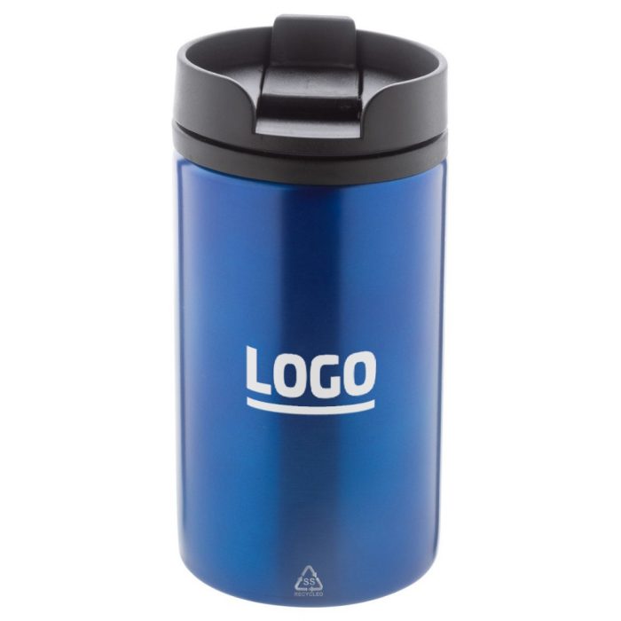 Ποτήρι διπλού τοιχώματος από ανακυκλωμένο ανοξείδωτο ατσάλι (90% ανακυκλωμένο ανοξείδωτο ατσάλι και 10% ανοξείδωτο ατσάλι) με αφαιρούμενο περίβλημα από δέρμα πολυουρεθάνης. Καπάκι με συρόμενη οπή γουλιάς. Χωρίς διαρροές. Χωρητικότητα: 350 ml.