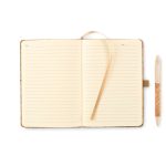 Σημειωματάριο Α5 με κάλυμμα από φελλό σε σκληρό χρώμα. Δεσμευμένη υπόθεση. 192 χαρτί με γραμμές (96 φύλλα). Ελαστικός ιμάντας κλεισίματος, σελιδοδείκτης κορδέλας και ελαστική θήκη στυλό.