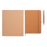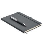 Ανακυκλωμένο δέρμα (75%) A5 notebook με σκληρό εξώφυλλο. Κάσα. 160 σελίδες με γραμμές από ανακυκλωμένο χαρτί (80 φύλλα). Ταιριαστός ελαστικός ιμάντας κλεισίματος, μαρκαδόρος σελίδας κορδέλας και θήκη πένας. Ασορτί στυλό twist metal. Μπλε μελάνι. Παρουσιάζεται σε κουτί χαρτιού χειροτεχνίας.