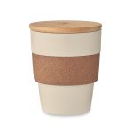 Ποτήρι μονού τοιχώματος σε PP με προστατευτικό μανίκι από φελλό και καπάκι από μπαμπού.