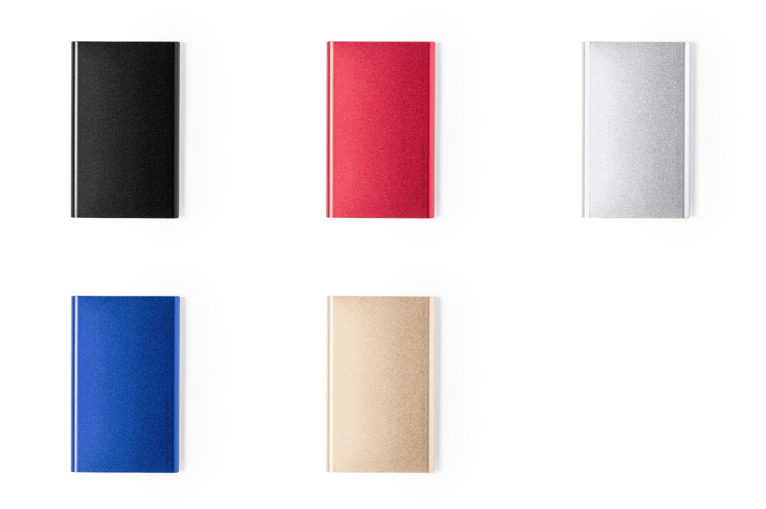 Εξωτερική βοηθητική μπαταρία 4.000 mAh κατασκευασμένη από αλουμίνιο. Με έξοδο USB και είσοδο Micro USB. Περιλαμβάνονται ενδείξεις κατάστασης φόρτισης LED και καλώδιο φόρτισης Micro USB. Διατίθεται σε μεγάλη ποικιλία χρωμάτων και παρουσιάζεται σε ατομικό κουτί σχεδιασμού kraft, με εγχειρίδιο οδηγιών στα αγγλικά και τα ισπανικά.