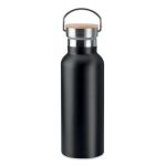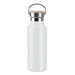 Μεταλλικό θερμός διπλού τοιχώματος από ανοξείδωτο χάλυβα με καπάκι από μπαμπού και λαβή μεταφοράς. Χωρητικότητα: 500 ml.