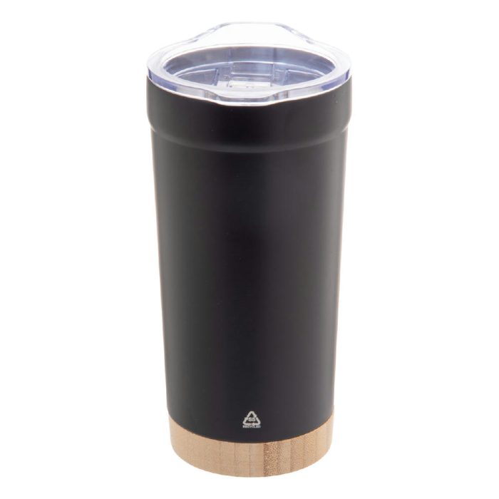Ανακυκλωμένο ανοξείδωτο ατσάλι διπλού τοιχώματος (90% ανακυκλωμένο ανοξείδωτο ατσάλι και 10% ανοξείδωτο ατσάλι) ποτήρι με καπάκι . Χωρητικότητα: 600 ml.