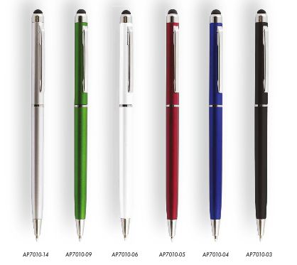 Πλαστικό στυλό με χρωματιστό σώμα και ασημί λεπτομέρειες.