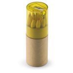 Μολύβια χρωματιστά 12 τεμαχίων σε θήκη. Διαφανές καπάκι ξύστρας μολυβιών.