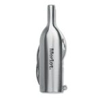 Σουγιάς σε σχήμα φιάλης κρασιού από ανοξείδωτο ατσάλι με 6 λειτουργίες: ανοιχτήρι μπουκαλιών, μαχαίρι, τιρμπουσόν, κόφτης αλουμινίου, μεγεθυντικός φακός και μπρελόκ.