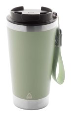 Ποτήρι διπλού τοιχώματος από ανακυκλωμένο ανοξείδωτο ατσάλι (90% ανακυκλωμένο ανοξείδωτο ατσάλι και 10% ανοξείδωτο ατσάλι) με αφαιρούμενο περίβλημα από δέρμα πολυουρεθάνης. Καπάκι με συρόμενη οπή γουλιάς. Χωρίς διαρροές. Χωρητικότητα: 350 ml.