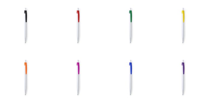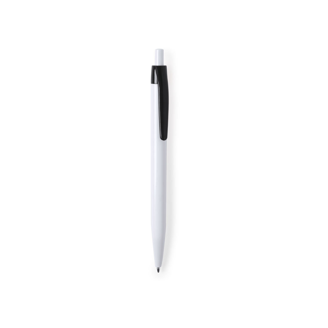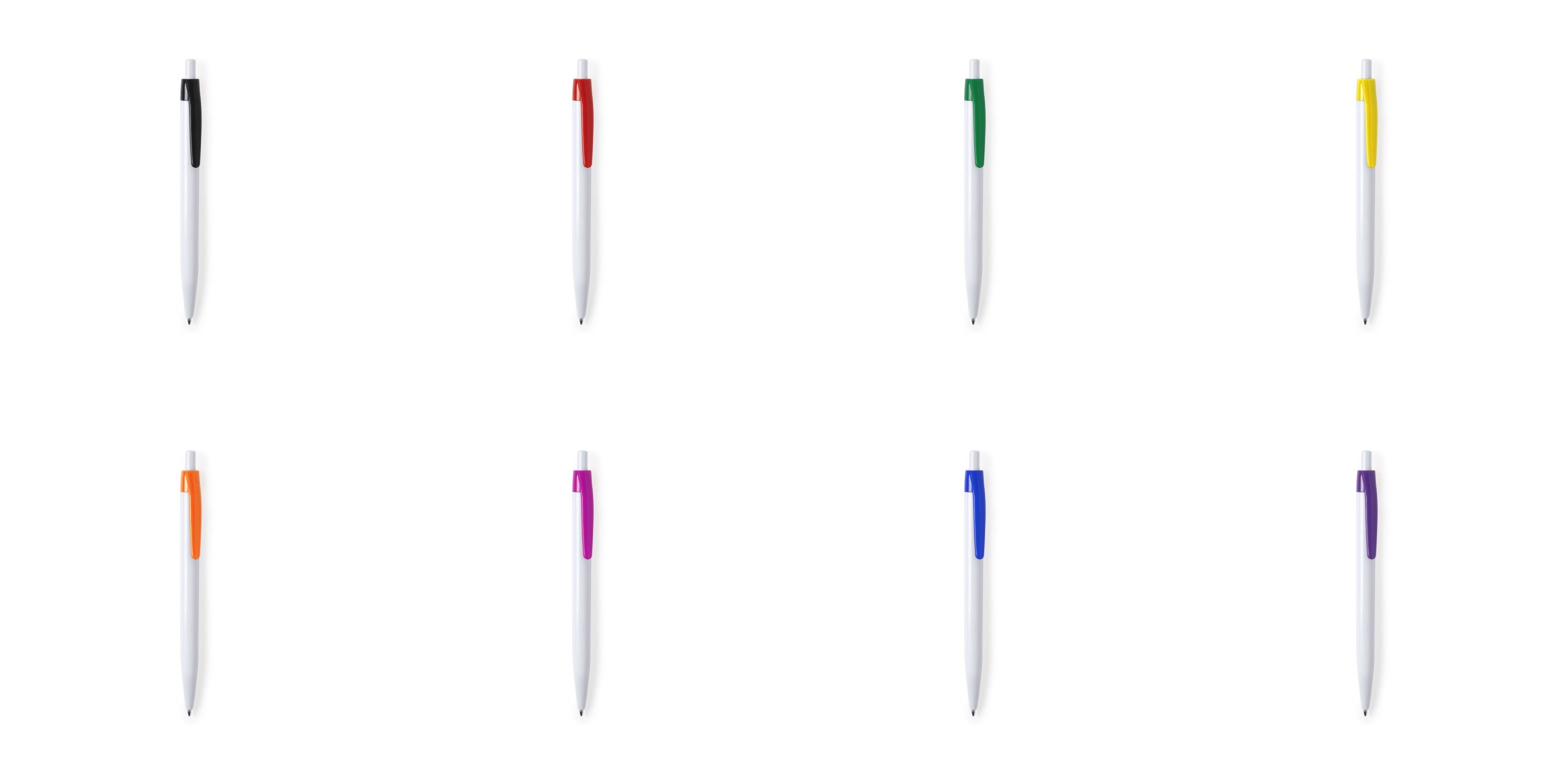 Πλαστικό στυλό με άσπρο σώμα και χρωματιστό clip.