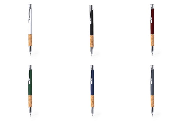 Ανθεκτικό στυλό αλουμινίου με φινίρισμα από καουτσούκ και λαβή φελλού, με κάννη σε μεγάλη γκάμα διακριτικών χρωμάτων.