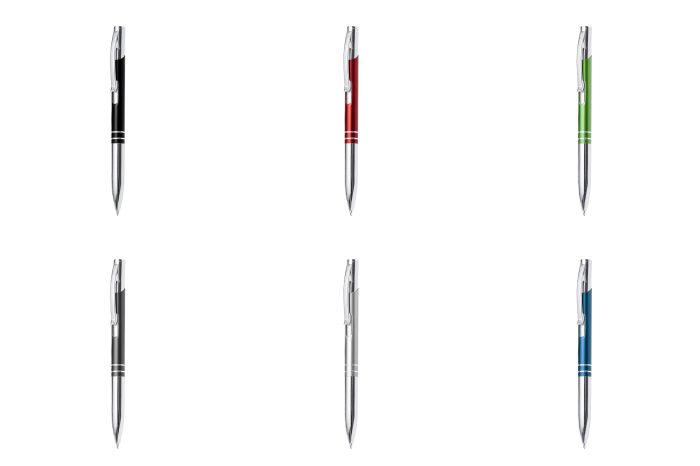 Σώμα αλουμινίου σε ποικιλία χρωμάτων. Γνήσιο κλιπ, δαχτυλίδια και μύτη σε ασημί φινίρισμα. Μπλε μελάνι.