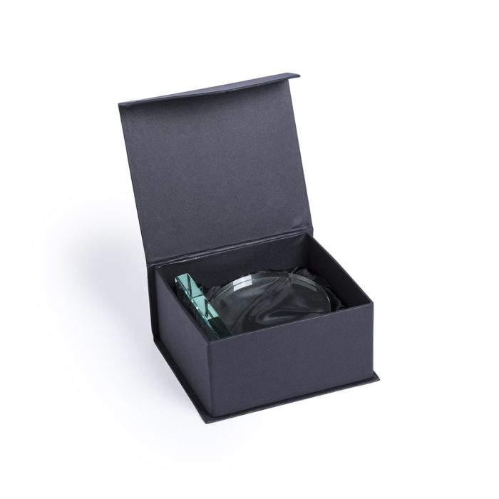Χοντρή γυάλινη πλάκα τροπαίων με κομψό κυκλικό σχεδιασμό και τετράγωνη βάση. Ειδικά σχεδιασμένο για εκτύπωση με λέιζερ και παρουσιάζεται σε ατομική προστατευτική θήκη.