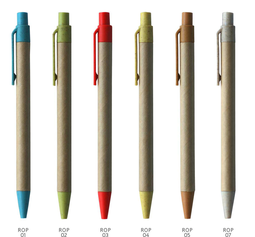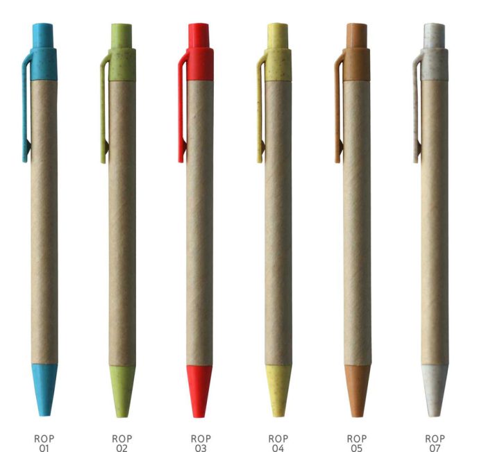 Στυλό απο ανακυκλωμένο χαρτί με χρωματιστές λεπτομέριες.