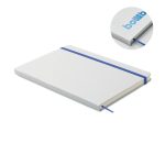 Notebook Α5 με σκληρό ανακυκλωμένο κάλυμμα . Λευκό κάλυμμα. 160 σελίδες ανακυκλωμένου χαρτιού με γραμμές (80 φύλλα). Ελαστικός ιμάντας κλεισίματος, αντιστοίχιση σελιδοδείκτη κορδέλας. Μετά τη χάραξη με λέιζερ αποκαλύπτεται το χρώμα.