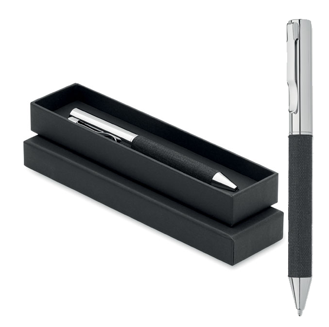 Στυλό μεταλλικό σε θήκη με ασημί λεπτομέρειες .