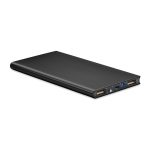 Power bank 8000 mAh σε ανακυκλωμένο αλουμίνιο. Χωρητικότητα για χρήση smartphone, ρεύμα εξόδου DC5V / 1A και DC5V / 2A . Περιλαμβάνει ενδεικτική λυχνία και καλώδιο USB με βύσμα micro usb.