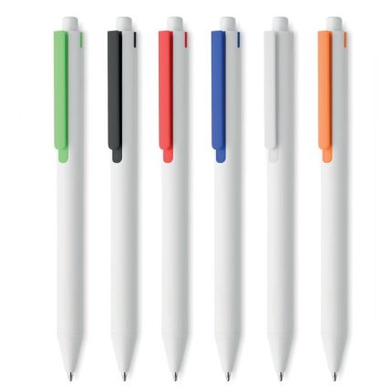 Πλαστικό στυλό με χρωματιστό σώμα και ασημί λεπτομέρειες.