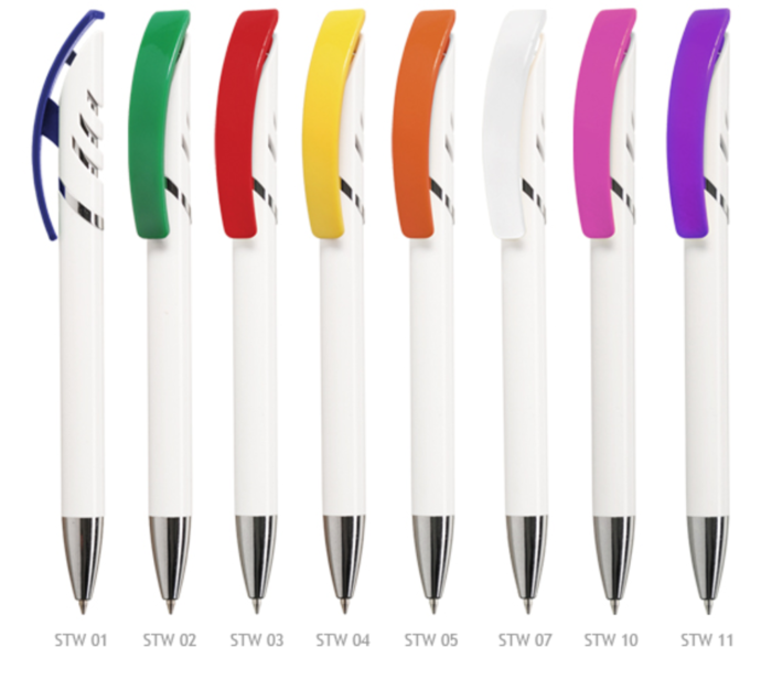 Πλαστικό στυλό με άσπρο σώμα , χρωματιστά clip.