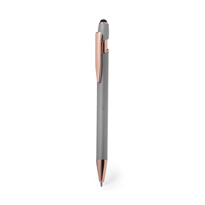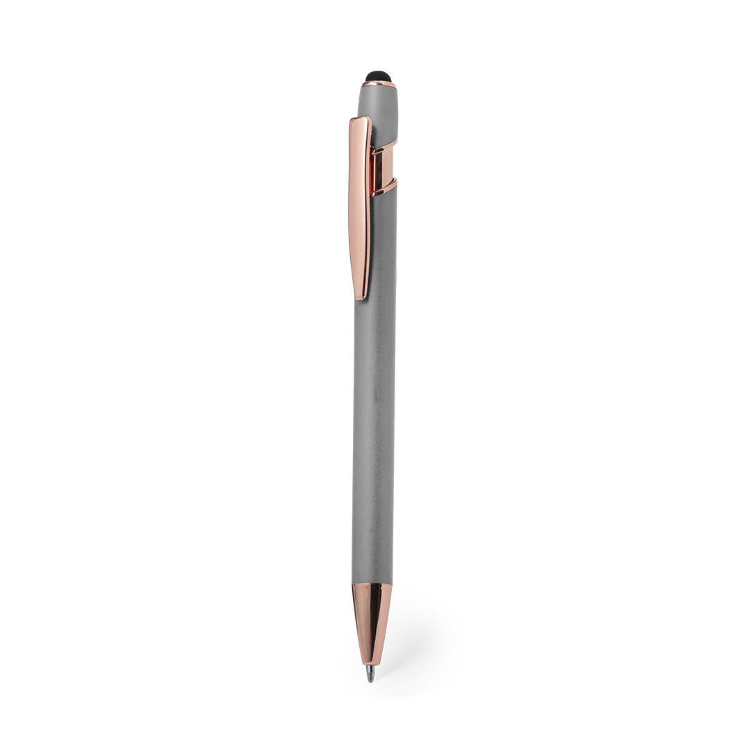 Ανθεκτικό στυλό αλουμινίου με ματ φινίρισμα και διακοσμητικά στοιχεία σε κομψό χάλκινο φινίρισμα, με σώμα σε μεγάλη γκάμα διακριτικών χρωμάτων.