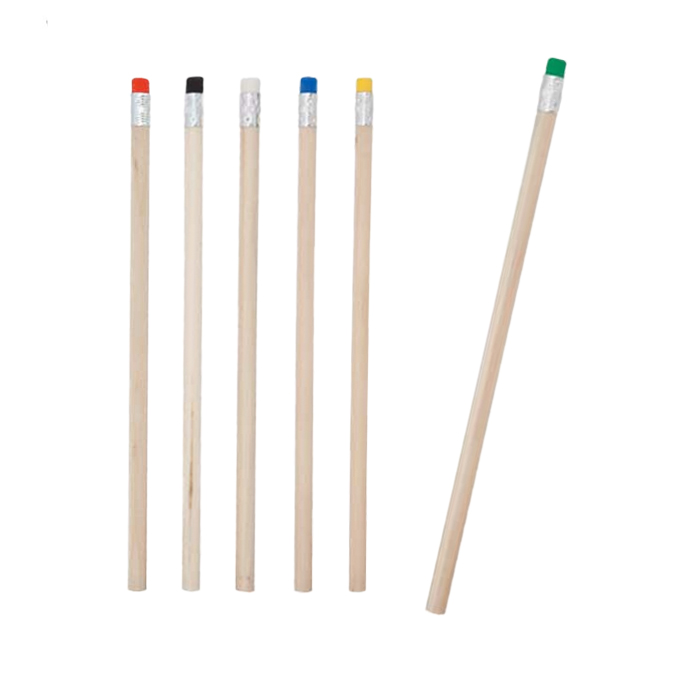 Μολύβια ξύλινα σε φυσικό χρώμα με χρωματιστή γόμα.
