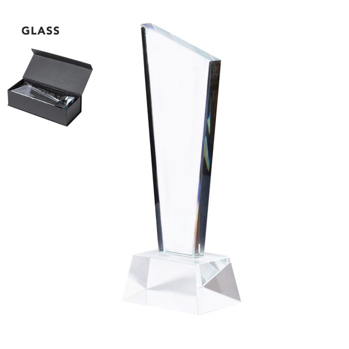 Χοντρό γυάλινο τρόπαιο με αποκλειστικό σχεδιασμό και ανθεκτική βάση. Ειδικά σχεδιασμένο για χάραξη με λέιζερ και παρουσιάζεται σε προστατευτική θήκη από ανθεκτικό χαρτόνι, με μαγνητικό κλείσιμο και αφρό, κομμένο εσωτερικό.
