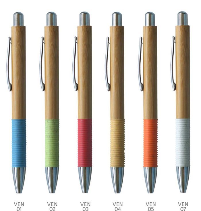 Στυλό απο bambu ξύλο με μεταλλικές λεπτομέρεις .