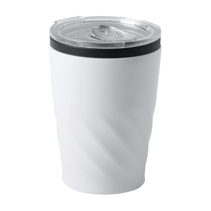 Ποτήρι διπλού τοιχώματος από ανακυκλωμένο ανοξείδωτο ατσάλι (90% ανακυκλωμένο ανοξείδωτο ατσάλι και 10% ανοξείδωτο ατσάλι) με αφαιρούμενο περίβλημα από δέρμα πολυουρεθάνης. Καπάκι με συρόμενη οπή γουλιάς. Χωρίς διαρροές. Χωρητικότητα: 350 ml.