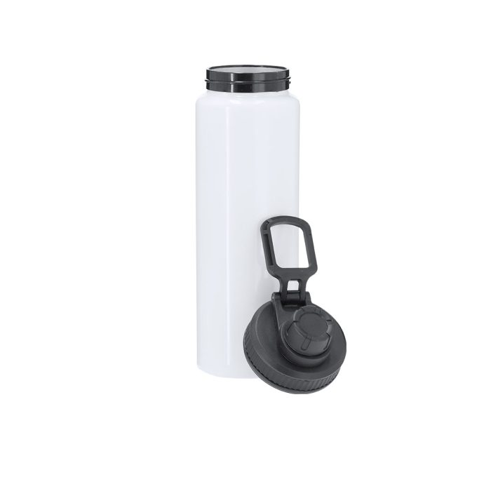 Σε λαμπερό λευκό χρώμα. Περιλαμβάνει μαύρο καπάκι με βιδωτό κλείσιμο, γκρι λαβή σιλικόνης για βέλτιστη στεγανοποίηση, δοσομετρικό στόμιο και ρυθμιζόμενη λαβή μεταφοράς. Χωρίς BPA.