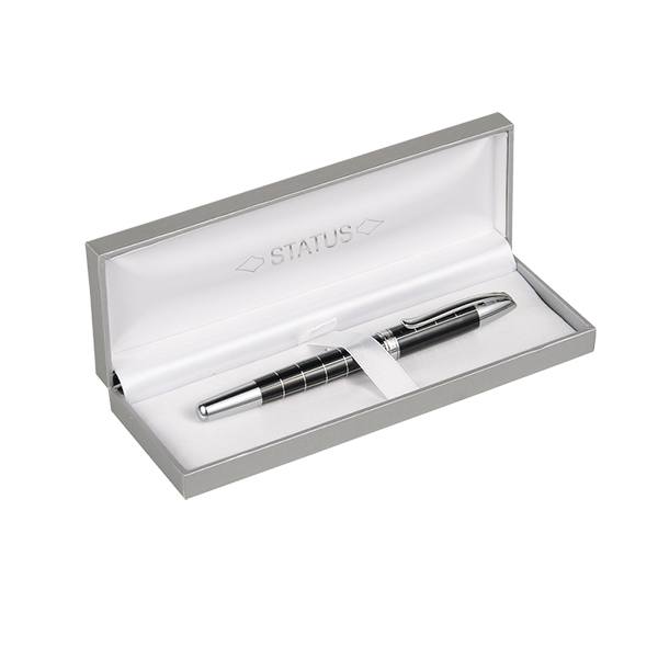 Ρόλερ Zeus πολυτελείας μάρκας STATUS μαύρο με ασημί λεπτομέρειες σε γκρι κουτί με λευκό σατέν εσωτερικά